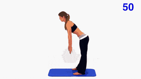 动作方法:双脚分开同肩宽,膝关节伸直,脚尖勾回,身体前扑,加振动用双手去抓双脚脚尖或者双脚前脚掌;