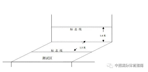 情况一:场地长和宽均为3米,四周设置明显的标志线:场地外围设置判断垫球高度的标志物,标志物在地面的垂直投影与同侧标志线相距1米。男生垫球高度(从地面起至球底部)不低于2.35米,女生不低于2.15米。测试时,方法正确,高度符合要求的垫球方能计数。
