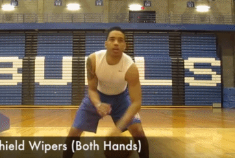 3、右手在球上,左手在侧面护球,球不可越线,两臂自然弯曲