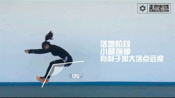 要点:小腿前伸的时机把握好,曲腿前伸臂后摆,落地后往前不往后。