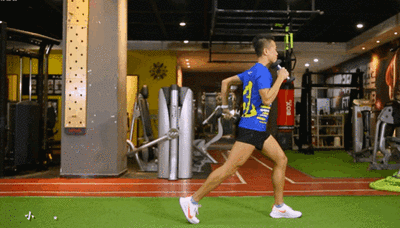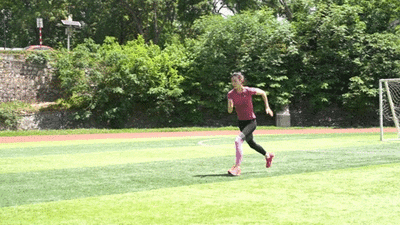 后蹬跑:40米X3组,要求前面腿尽量前跨,后面腿尽量伸直,尽量增大步幅。