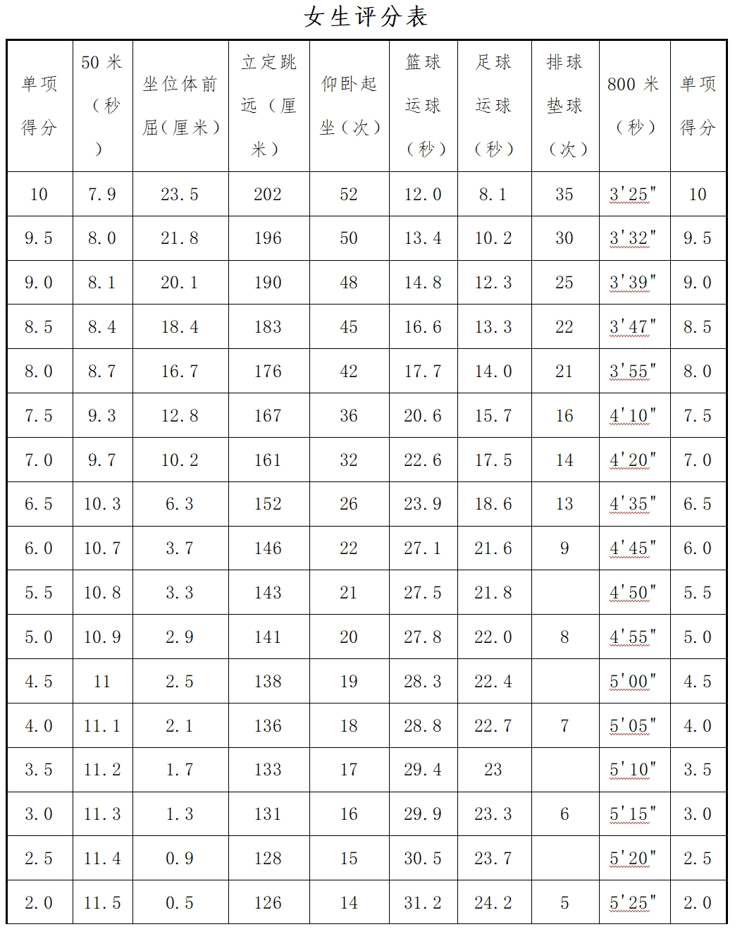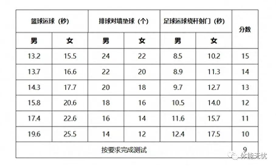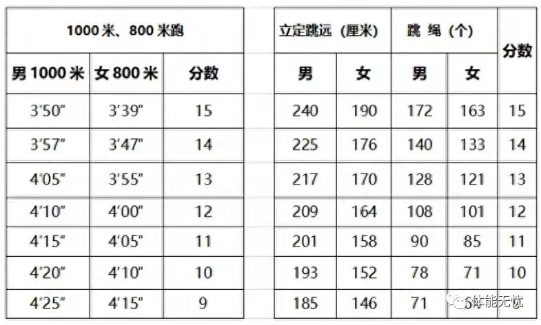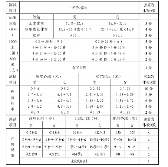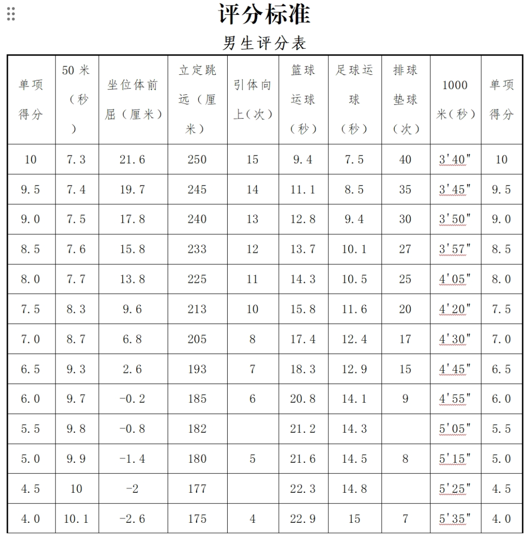 中考体育评分细则