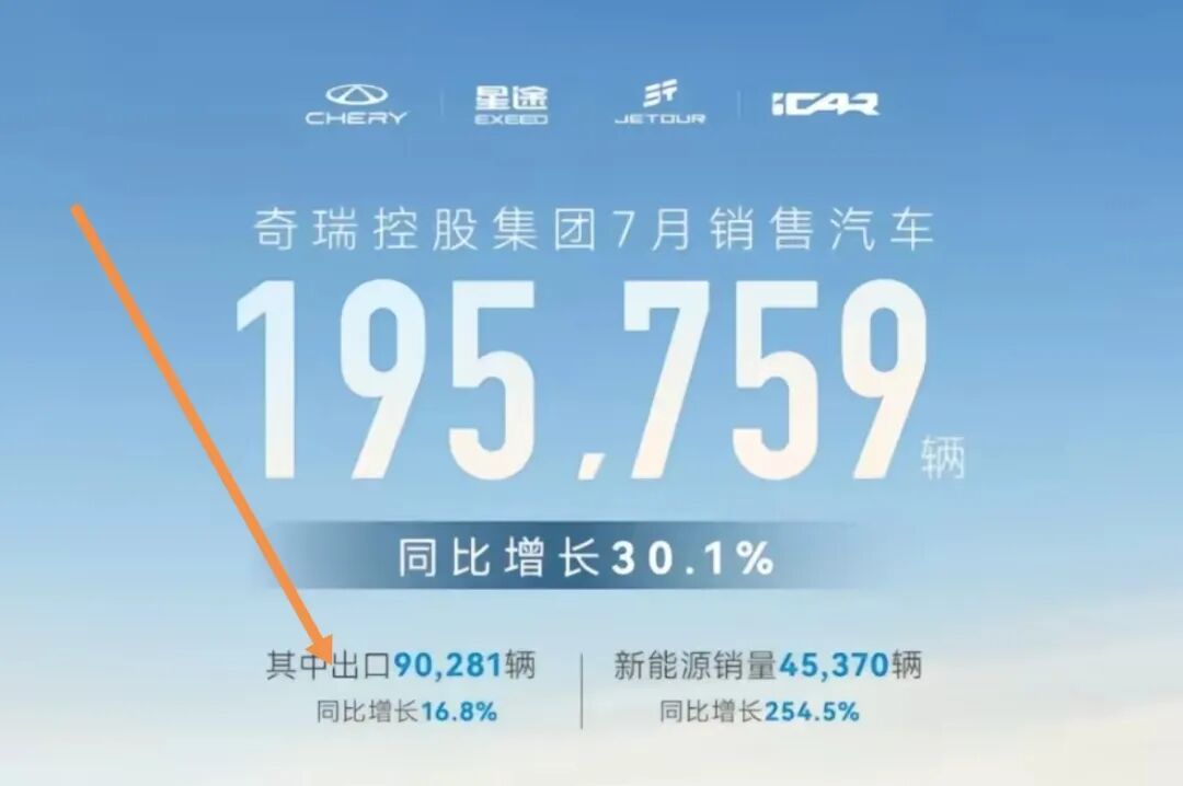 奇瑞最新7月出口9万辆,今年的前7个月,奇瑞累计已经出口60万辆!7月份,国内销量第一次超越海外。