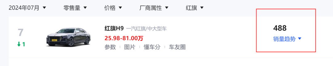 果然,红旗H9这样的纯燃油国产豪车出口外国任重道远。该车在国内市场的销量也被BBA死死压制,最新7月份的销量为488台,该车已经成功出口中东、东南亚等市场,期待出口能够挽回一局。