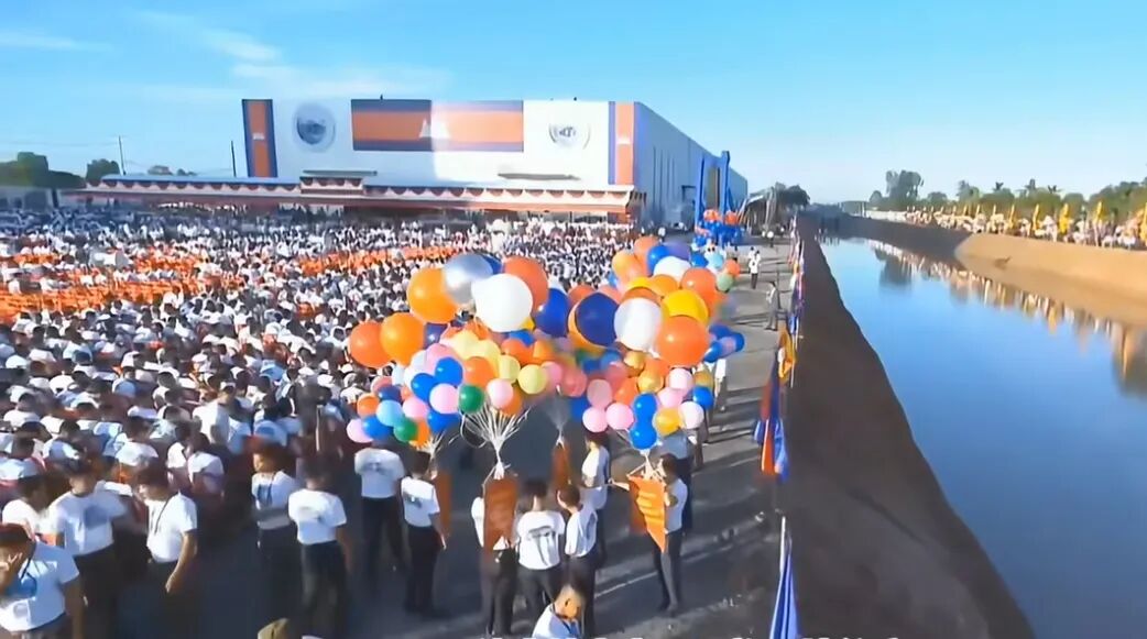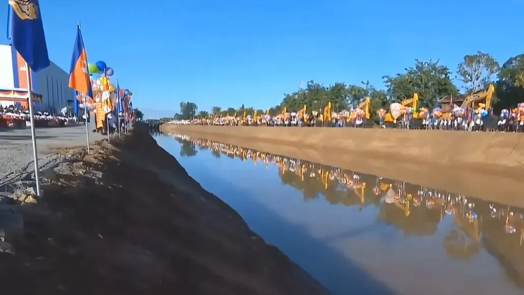 开挖仪式当天运河两边挤满了数万柬埔寨民众,以及上千台中式机械。开挖仪式当天,这条运河起始段很明显就经过了挖掘,显然是为了开挖仪式提前做的准备。