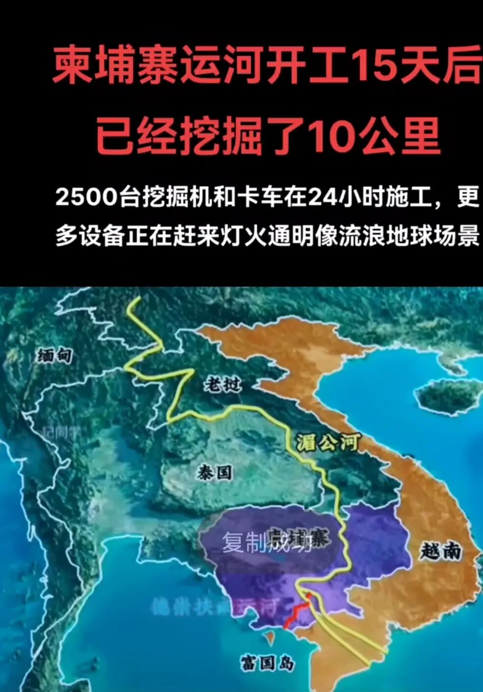 从8月5号柬埔寨运河正式动工,直到8月20日,前方传来的消息,这条运河已经被中国的工程队伍掘进整整十公里!当然,沿途岸堤还没来得及修上防护和路边的建筑,以及各类的建筑,但是最重要的掘进,我们的速度就绝对是世界第一。
