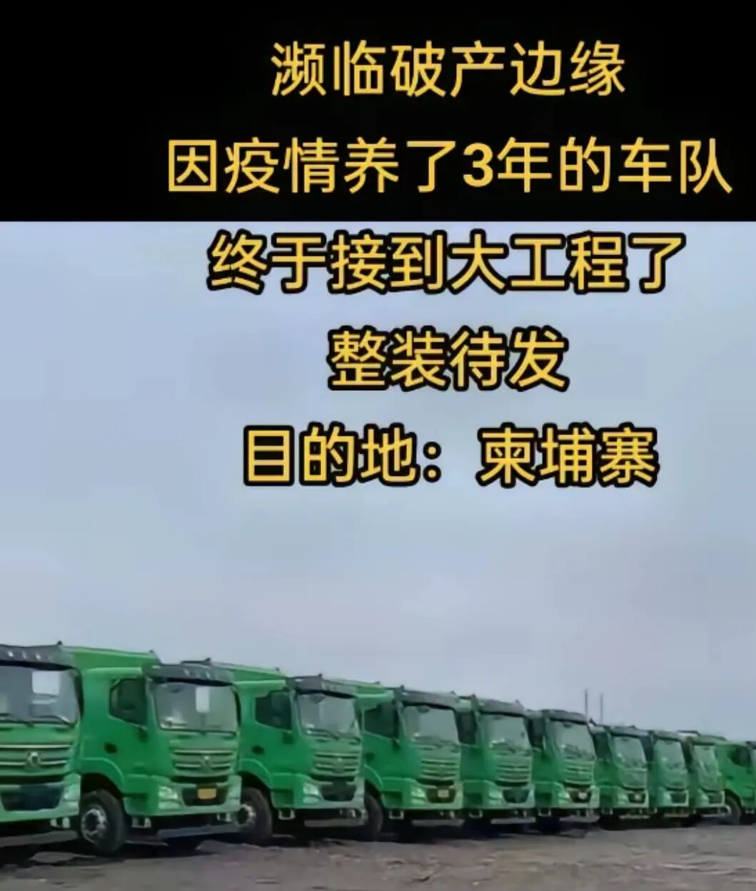 从全国各地调来柬埔寨的各类国产机械,包括挖掘机、吊机、渣土车、碾压机等机械早就“饥渴难耐”,很多都在国内没开动,甚至因为三年疫情濒临破产。突然,这位广东的渣土车挖机车队老板,抖音上发布消息称:上个月就成功接到了柬埔寨运河订单。于是他的车队上百辆渣土车和挖掘机纷纷奔赴柬埔寨工地现场,这个总价值17亿美元的大项目彻底救活了他的车队!