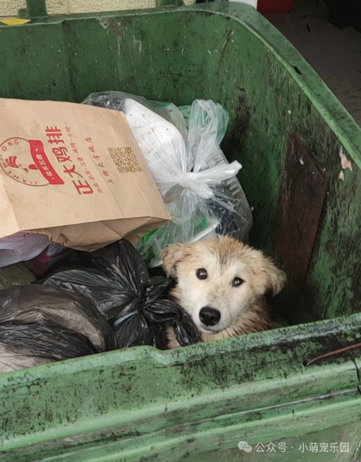 那天下午,天空下着小雨,小姐姐撑着伞出门去扔垃圾。扔完垃圾,一转头,之后在垃圾桶里看到了一只小狗。