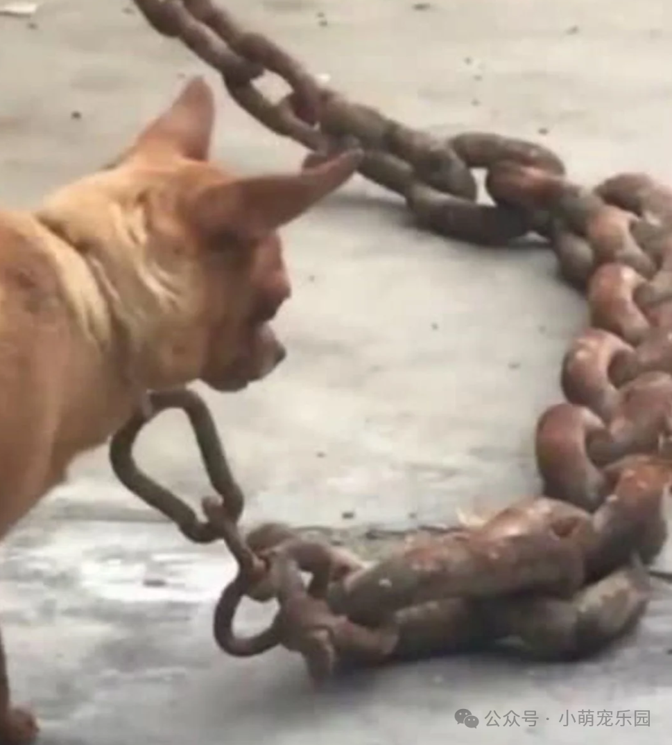 我刚准备离开,小狗突然转头看向我,那眼神里好像在说:“我何德何能?用这么粗的链条将我捆绑?”看见我也不叫,看着挺温顺的小狗呀!那一刻我心都化了,这哪儿是恶犬啊,这分明是个受委屈的小可怜儿。