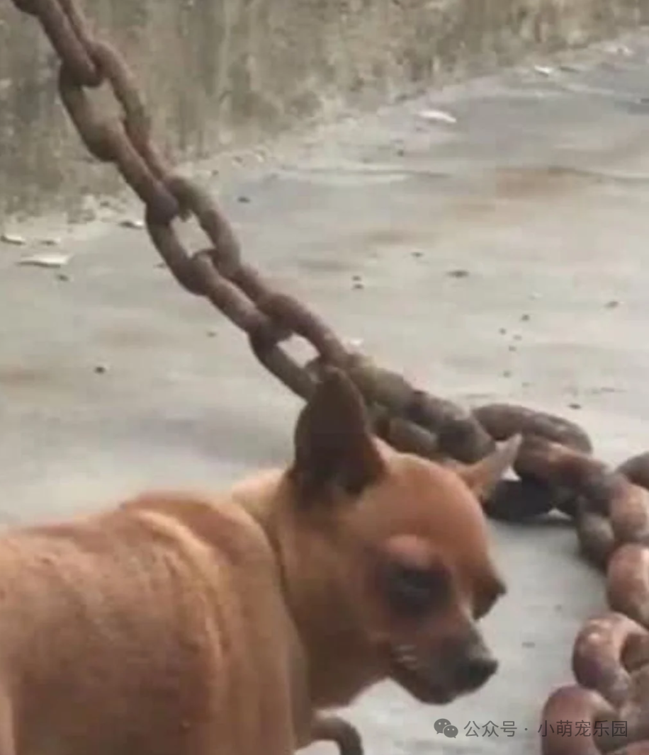 这小狗也太可爱了吧,哪有什么恶犬的样子。这么个小生命,被拴得这么严实,得多难受啊。看着它被拴着,又觉得有点心酸。它那么小,却被这么大的铁链子拴着,估计在院子里走动都费劲。