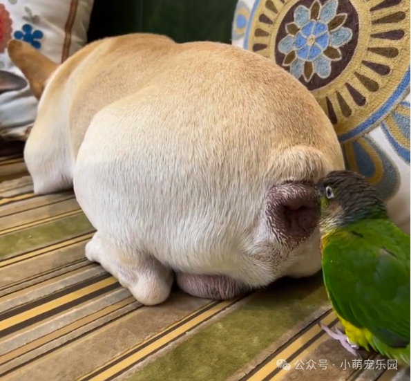 小姐姐当时真是笑死了,还以为鹦鹉要把豆豆的屁股眼当成了好吃的,想钻进去呢!这些小宠物,真是太可爱了!