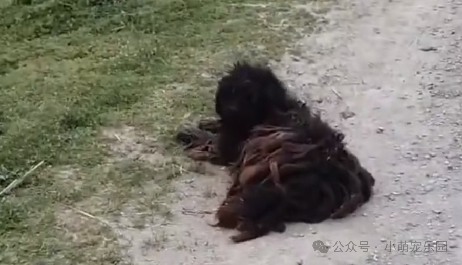 网友下午出去买菜,在村子里的路边看到了一只流浪狗,身上长了好长的毛,身上那毛又很脏,还结了厚厚的痂,有洁癖的人建议不要看下去了,有20斤的痂毛压在它身上,估计连喘气都费劲。你说,这得多难受啊!