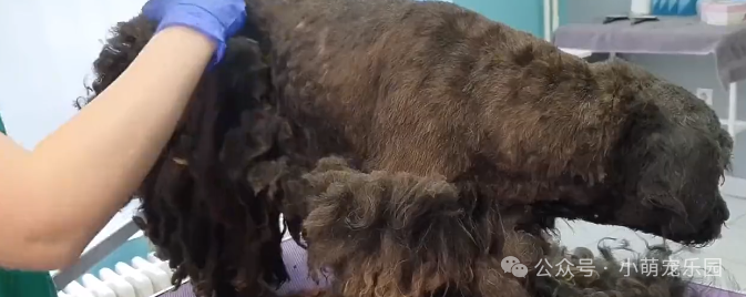网友走过去,它站了起来,向网友靠过去,就好像在跟网友求救,还在对网友不停地摇尾巴。看着它那无助的眼神,这狗狗性格这么温顺,又不咬人,网友心里就琢磨着,这狗狗要是能洗个澡,剪个毛,会不会就不会这么难受了,也能变得漂亮起来?说干就干,网友带它去了宠物医院。