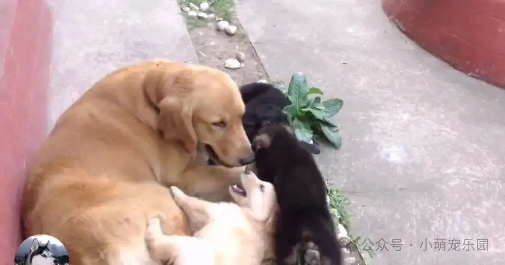 村里人过来看到之后,大家都说这位妈妈赚到了,一下子有了德牧和金毛。可这德牧爸爸对小狗们却是爱答不理的,好像这些小家伙和它没啥关系,连金毛妈妈都有点偏心,对自己的小狗好一些,对那两只“小德牧”就没那么热情了,哈哈哈,一过来就表示的很嫌弃,脸上的好像写着:你们长得就像你们老爸的渣男样,看着就讨厌。