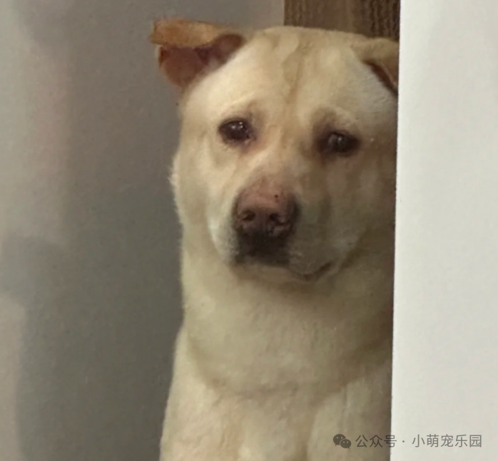 ——小狗看着装修师傅,眼神里满是委屈,心里想:完了,妈妈跟别人跑了,呜呜呜