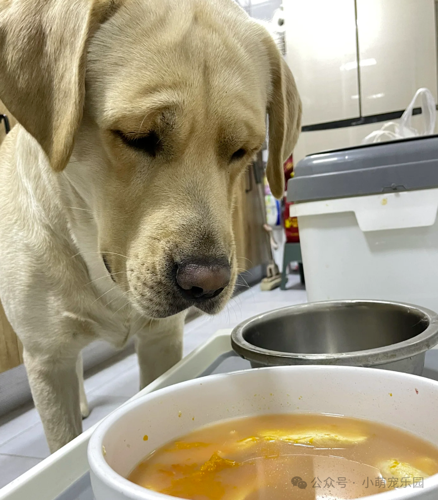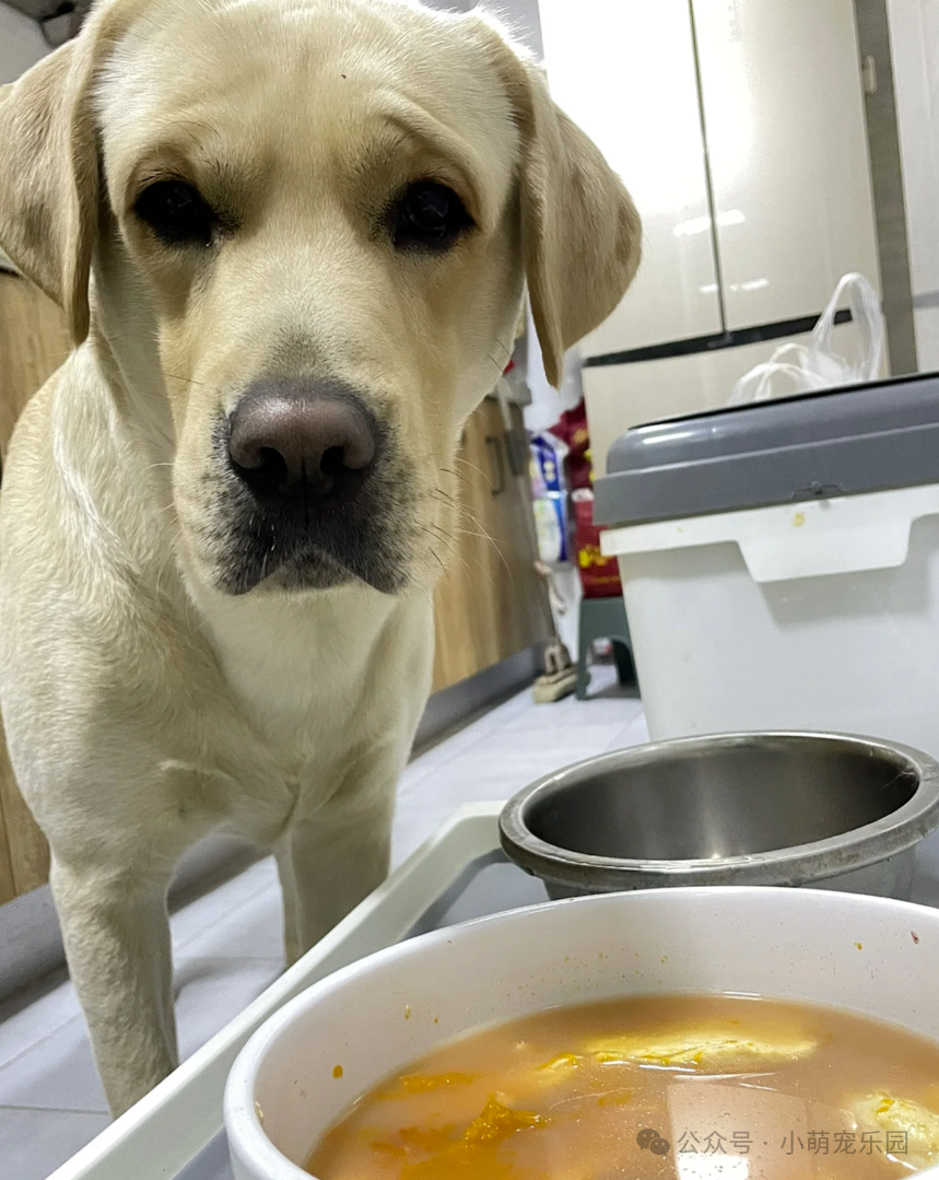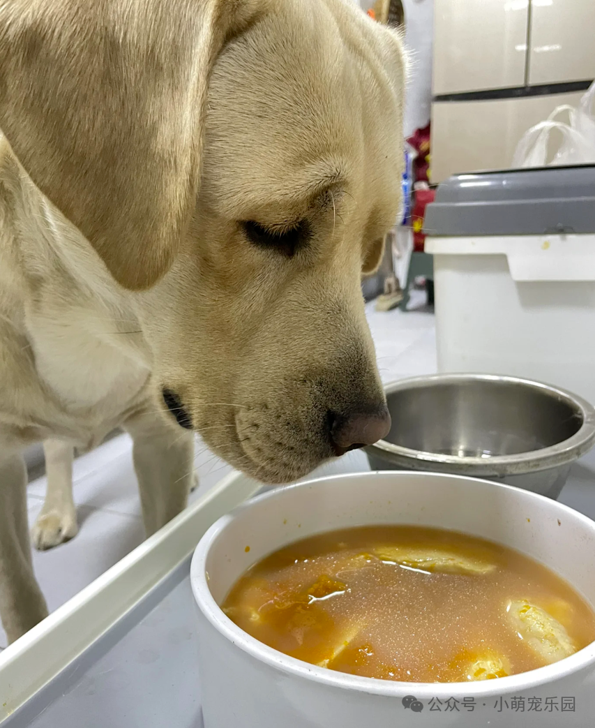 本来是打算给家里的那位拉布拉多小祖宗蒸个南瓜浓汤,暖暖身子,补补营养。可他太想早点品尝美味了,这汤还没煮透,它就急不可耐地凑过来了,那小眼神儿,仿佛在说:“快给我尝尝,快给我尝尝!”