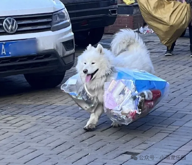 可你猜怎么着?这萨摩耶啊,聪明得紧,一看奶奶那勤劳劲儿,自己也跟着忙活上了。现在倒好,成了奶奶的得力小助手,捡废品那是一把好手,比咱村里的小伙子还利索呢,哈哈!每次看到它那摇头晃脑地在废品堆里穿梭的样子,我就忍不住想笑,心里头又暖又酸。