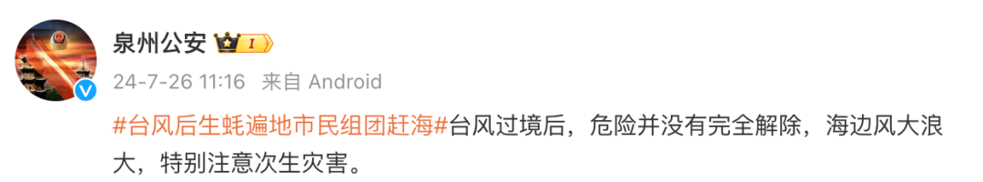 3.台风过后,近岸海水中还可能出现一些危险的海洋生物,比如水母、海胆和海蛇,其毒液可能对人体造成严重伤害,甚至威胁生命。