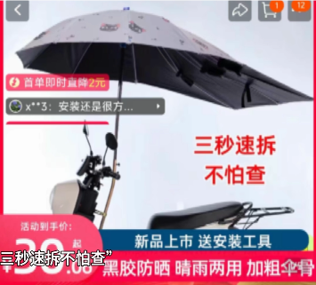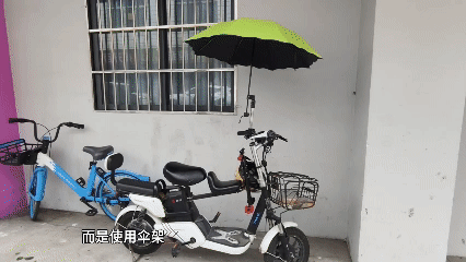 不少人会在电动车上加装遮阳伞