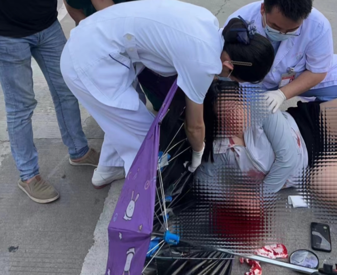 “当时的情况是比较严重的,首先是伞骨穿刺,其次是伤者现场出血量比较多。”