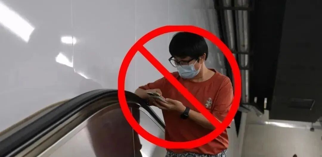③乘坐自动扶梯时,请站稳扶好,身体与扶梯侧板保持一定安全距离,不要倚靠侧板及扶手带。请集中注意力,不要低头看手机或探身观望,到达出口处应迅速离开,防止造成拥堵或跌倒摔伤。