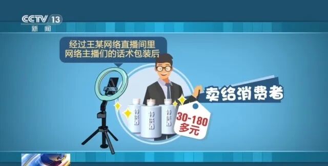 犯罪嫌疑人陈某购买的基酒每斤在10元左右,他以20至30元不等的价格卖给犯罪嫌疑人王某,经过王某直播间里主播们的话术包装后,这些10多元成本的低档酒,摇身一变成了所谓的高端“特供酒”,然后王某再以30元至180多元不等的价格在直播间里售卖。