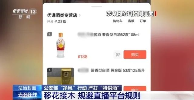 民警推测,这些售卖特供酒的直播间正是利用这种移花接木的方式来规避直播平台的监管规则。