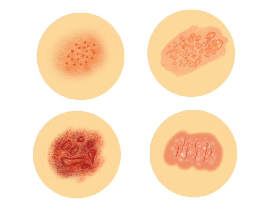 湿疹是一种炎症性、瘙痒性的皮肤病,分为急性、亚急性、慢性湿疹。急性湿疹主要表现为红斑、水肿、粟粒大小的丘疹、丘疱疹和水疱,有时会伴有糜烂和渗出;亚急性丘疹红肿和渗出相对于急性来说会减轻,出现糜烂面的结痂和脱屑;慢性湿疹则主要表现为皮肤的粗糙、肥厚和苔藓样变,是皮肤科的常见病症之一。