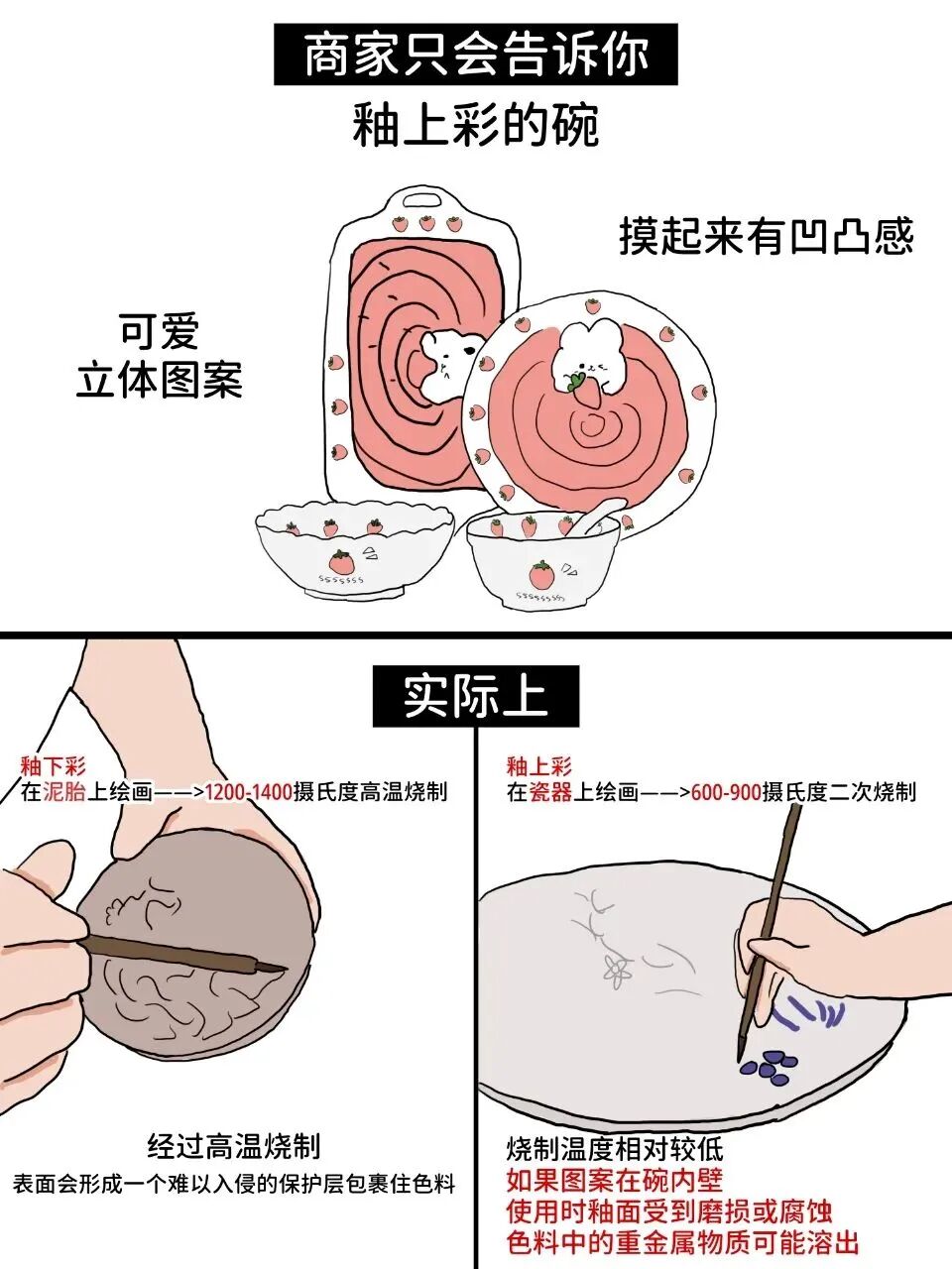 有时候自己“看颜值”买回来的餐具自己都不放心:内壁印花的瓷盘、街边买的手作饭碗、样子可爱但不清楚是啥材质的水杯......这些餐具靠谱吗?选安全的餐具需要看什么指标?