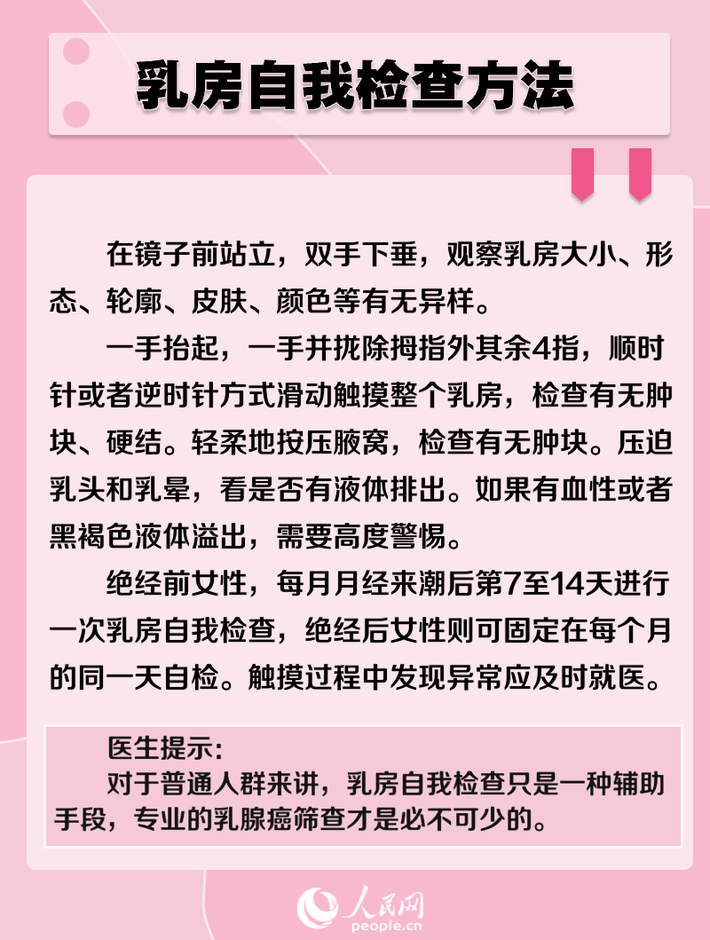 “女性可以每年定期进行一次乳腺检查,男性一旦乳房上摸到硬块,尤其是那种边界不清、质地坚硬、活动度较差的无痛性肿块,一定要及时到医院就诊。”杨丰提醒道。