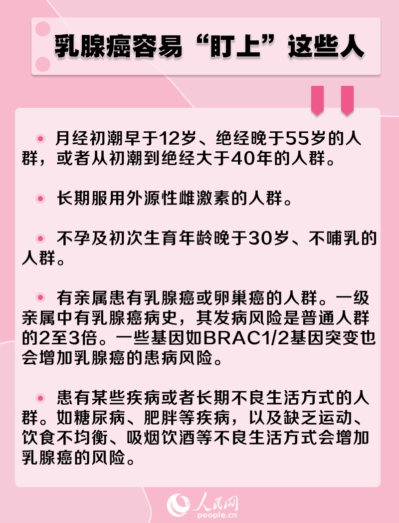 杨丰介绍,男性乳房发育、长期过量饮酒、过度服用含有雌激素的补品、胸部有辐射病史等因素都会增加罹患乳腺癌的机会。此外,超重肥胖会明显增加乳腺患病机会,因为多余的脂肪细胞能将体内雄性激素转变为雌性激素,导致体内激素水平失调。家里有乳腺癌家族史的市民也要格外留意。