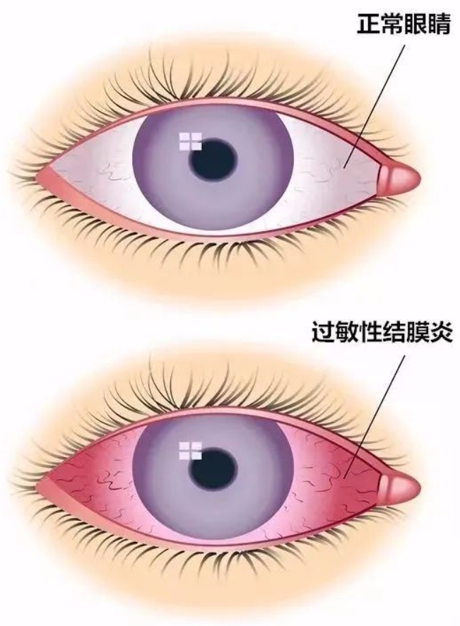 过敏性结膜炎主要症状为眼睛痒、流泪、双眼皮肿成单眼皮。