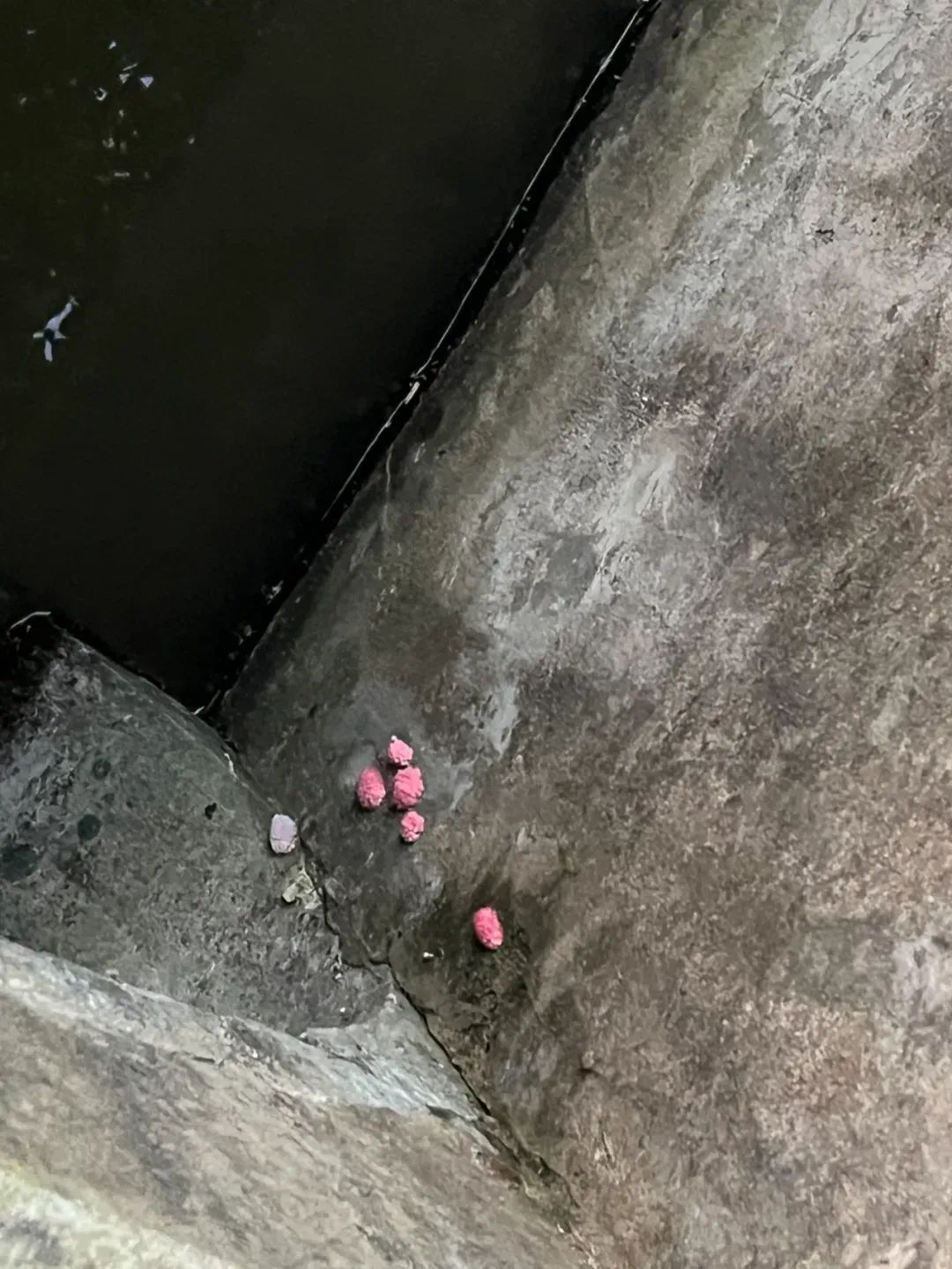 ③福寿螺的卵是鲜艳的红色或粉红色。