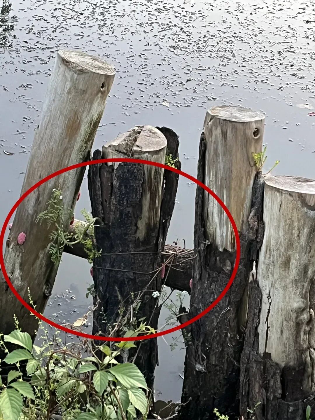 小王说村子里出了名的风景好自己每天都会饭后在村里散步这些天河道里的木桩上竟然开“花”了