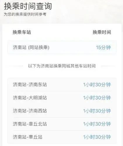 旅客可打开铁路12306App,点击“我的”,在“出行向导”中找到“换乘时间”,输入您换乘时所在的车站,便可快速了解换乘所需的时间,该查询结果仅供参考。