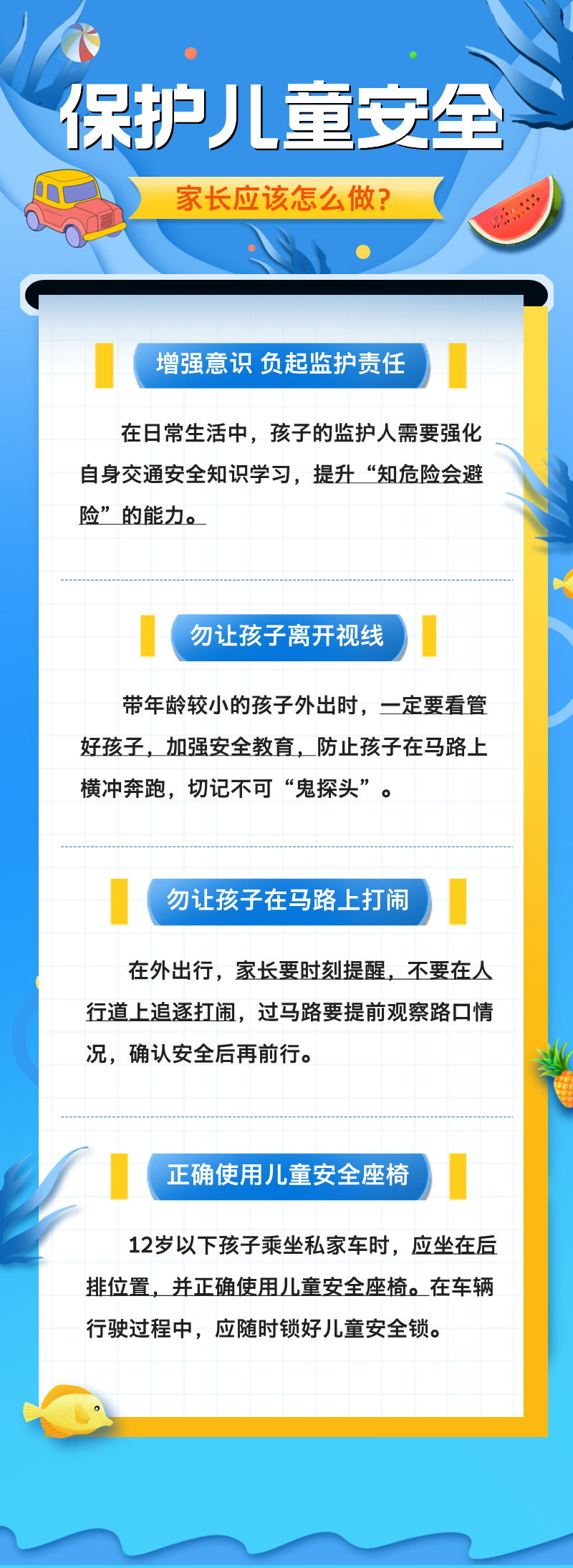 暑假是学生交通事故易发多发时段,由于少年儿童危险认知及自我保护能力不强,监护人疏于看管等原因,都可能让少年儿童在出行时遇到危险。