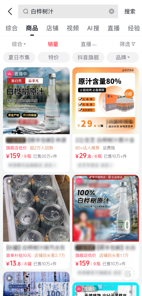 今年,一种被称为“树水”的饮料——白桦树汁,突然在电商平台火了。商家推销时将其打上“液体黄金”“应酬人士必备”等标签,也有数据显示其销售额一度超越可口可乐等饮料,成为“月度饮料类目销售榜第一”。
