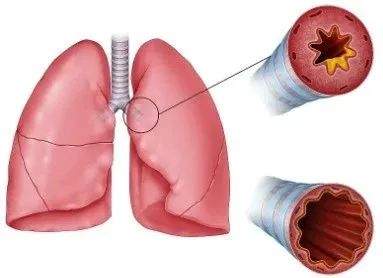 当哮喘发生时,气道管壁增厚,分泌物增加,引起气道变窄,进而产生胸闷、咳嗽等症状。