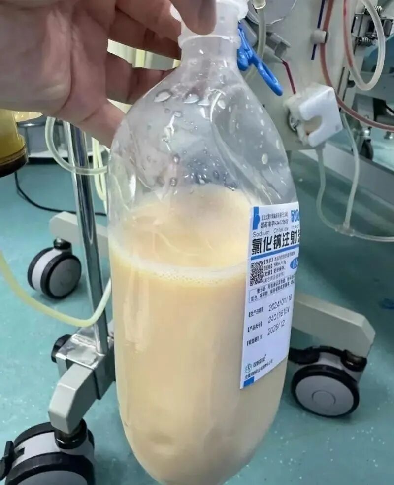 从患者体内置换出的如“牛奶”般的甘油三酯