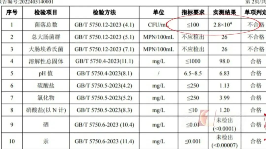 那么,这些山泉水到底纯不纯净?工作人员对鸡公山的三处取水点进行了采样检测,结果均显示菌落总数超标,同时检测出总大肠菌群以及大肠埃希氏菌。