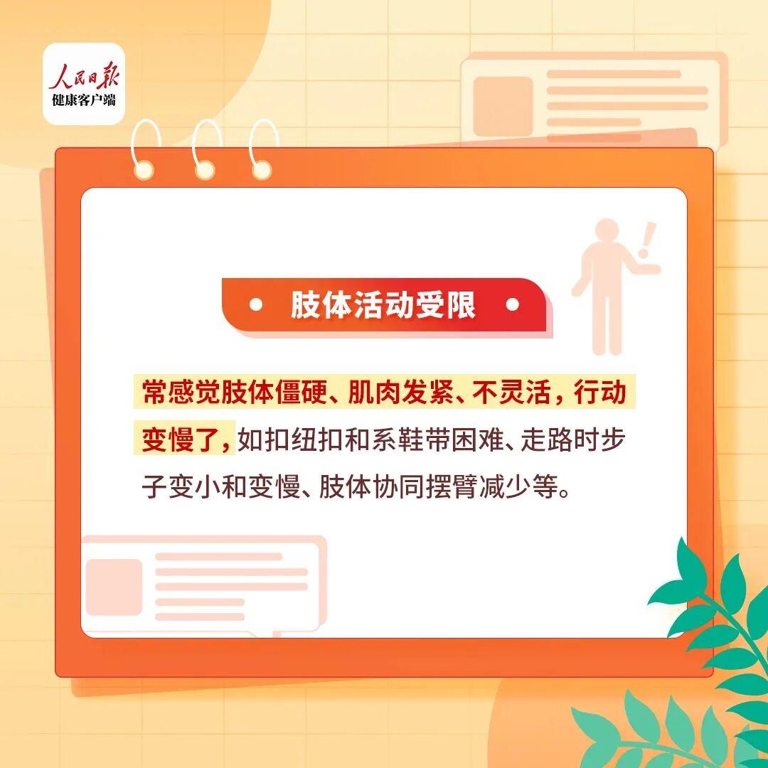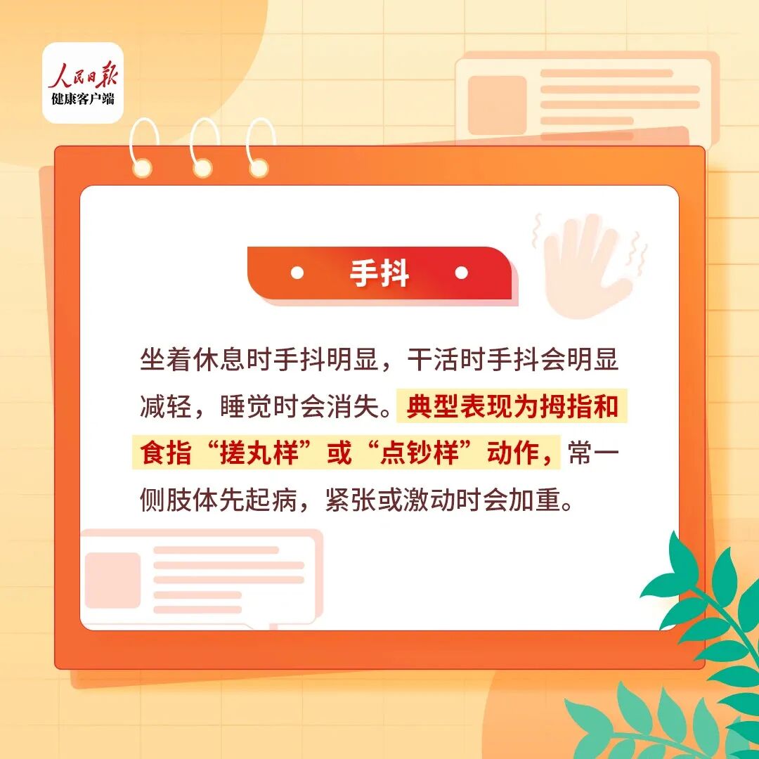 医生表示,如果出现以下症状,需要警惕帕金森病,建议及时就诊,早诊断、早治疗。