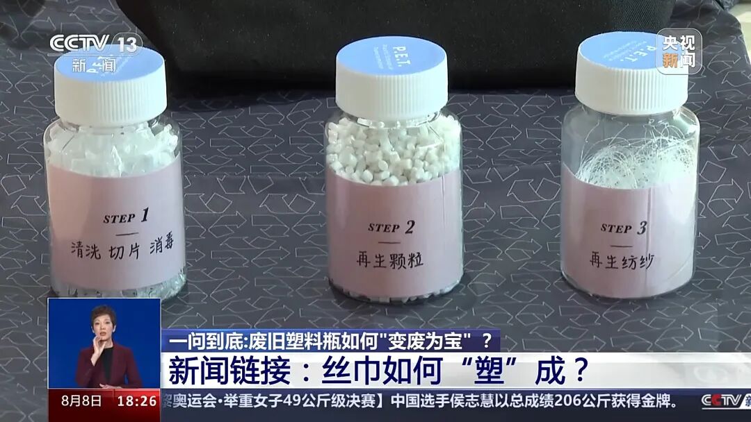 科技创新让原本被丢弃的饮料瓶得以“重生”,这种做法,不仅减少了对于石油等不可再生资源的依赖,也减少了塑料垃圾对环境的伤害。但饮料瓶不仅能变身成衣服,还可以做成更柔软的丝巾。前不久,国务院新闻办公室举行的一场新闻发布会现场,一条彩色丝巾吸引了在场所有人的注意。