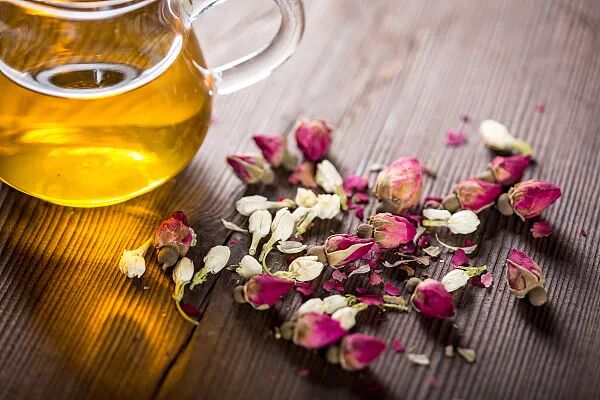 玫瑰花茶香气浓郁,入白开水内,滋味甘美,微微淡苦。对于压力过重、心绪不宁引起的郁结与肝火的调养,效果较好。
