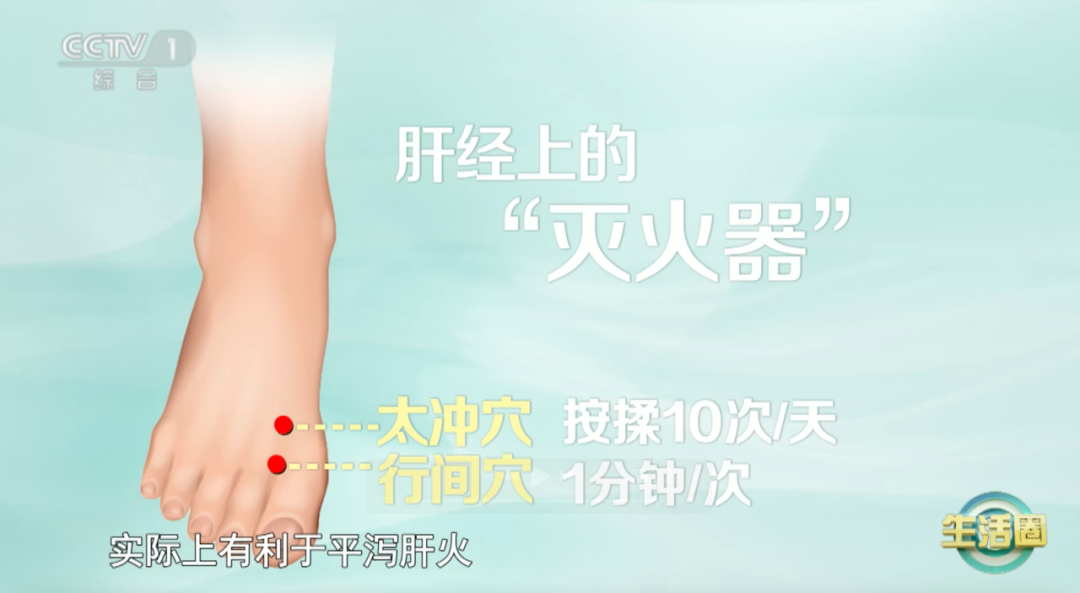 每天按揉10次,每次1分钟,有利于清泻肝火。
