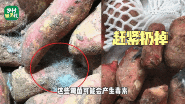 薯肉上长了凹陷黑斑、闻起来有苦味的红薯不能吃。