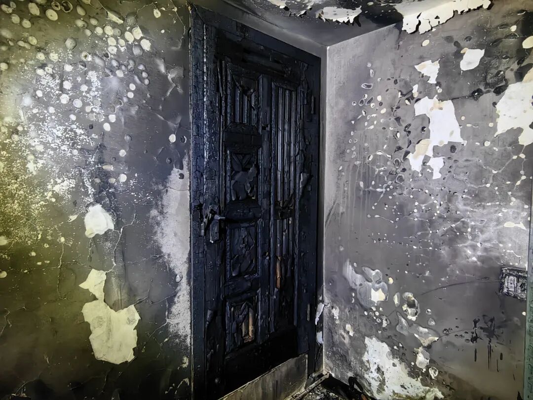 几分钟内通往室外的车库大门被烧毁