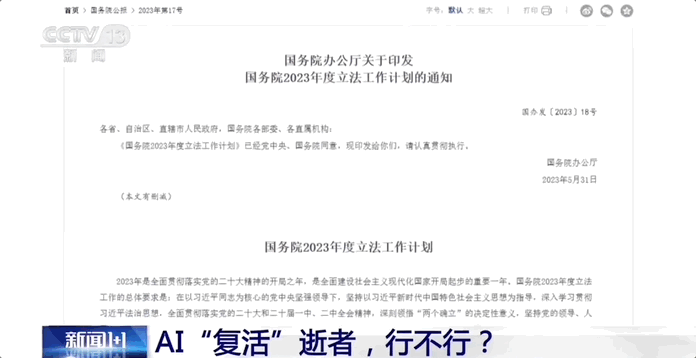 2023年6月,国务院办公厅公布的国务院2023年度立法工作计划中,首次将人工智能法草案纳入预备提请全国人大常委会审议的范围;