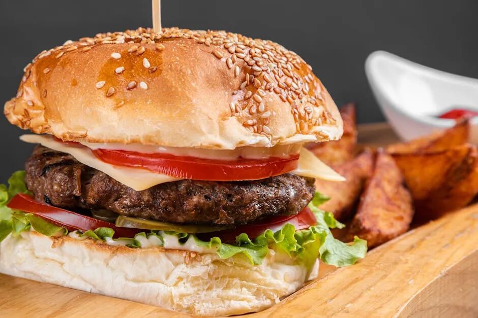 汉堡基本由面包、肉类、芝士、番茄、生菜等食材构成,其中包含碳水化合物、蛋白质、脂肪、维生素、矿物质等营养元素。