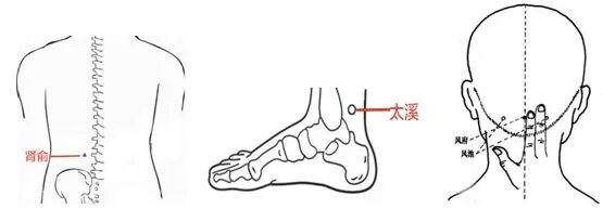 枕部与膀胱经和肾有关,可以按摩肾俞、太溪、风池等穴位。