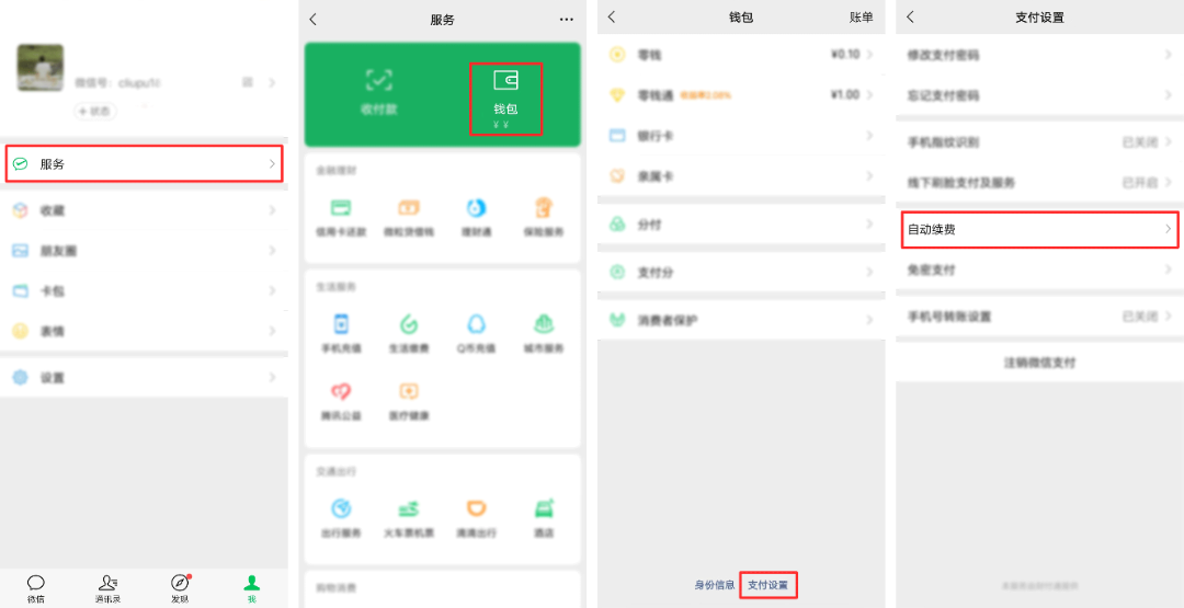 微信:打开微信,依次点击“我”→“服务”→“钱包”→“支付设置”→“自动续费”,选择关闭自动续费。